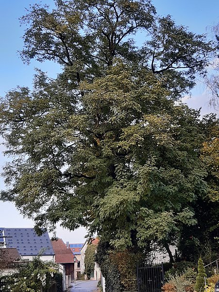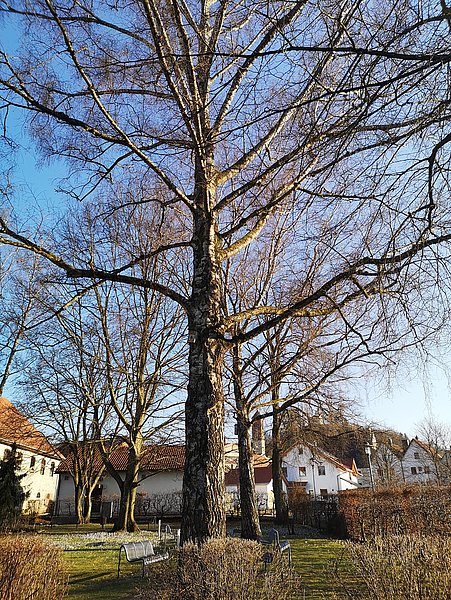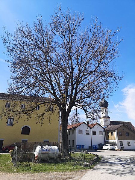 Bei Kraiburger Baumrundgang darf ein wichtiger Baum nicht fehlen: die Esche (Fraxinus excelsior) aus der Familie der Ölbaumgewächse. Ein besonders schönes Exemplar findet sich im Hof hinter dem Gasthof Unterbräu.