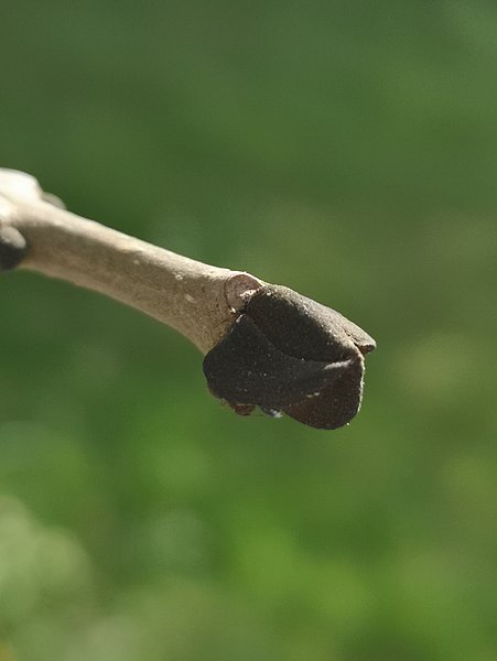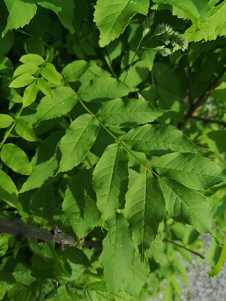 Sie hat einige Besonderheiten: Sie treibt unter den heimischen Baumarten als letzte aus, erst im Mai, wenn die anderen Laubbäume längst schon grün geworden sind, erscheinen ihre aus 9-15 gefiederten Blättchen zusammengesetzten Blätter. Im Herbst wirft sie als einzige Baumart in Europa die Blätter im grünen Zustand ab. Eine attraktive Herbstfärbung spart sie sich also. Unbelaubt kann man sie gut erkennen, denn ihre Winterknospen sind schwarz.