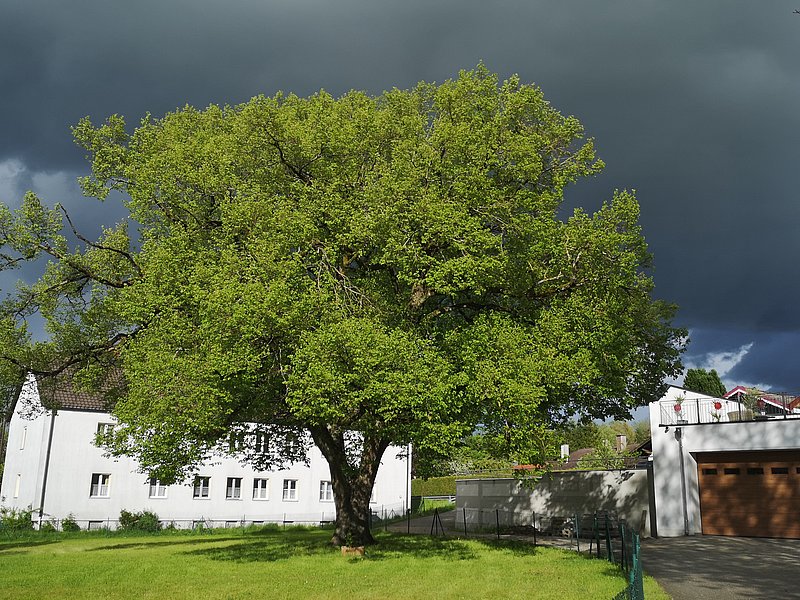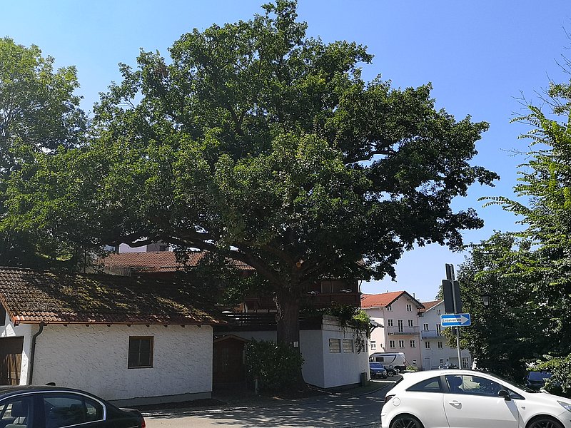 Um das Naturdenkmal der Kraiburger Stieleiche kümmert sich die Untere Naturschutzbehörde des Landkreises Mühldorf. Dies sichert diesem eindrucksvollen Baum hoffentlich noch ein langes Leben mitten im Ortszentrum Kraiburgs.